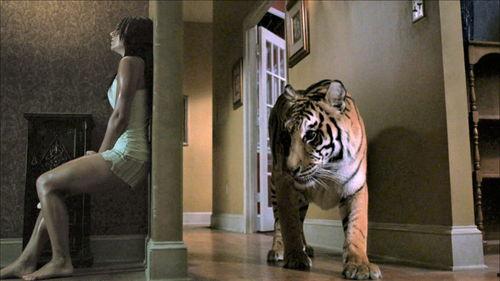 影片的恐怖氛围营造得非常到位。导演通过细腻的镜头语言,将恐怖元素融入每一个场景。比如,在夜晚的街头,老虎悄无声息地出现,它的眼神充满了邪恶和诡异。这种氛围让人不寒而栗,仿佛随时都会被那只神秘生物吞噬。